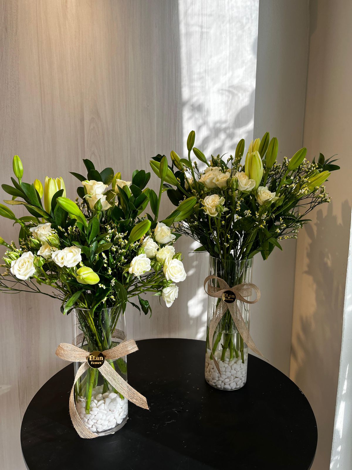 فازه طويله شفافه منسقه من البيضاء والبيبي روز الابيض